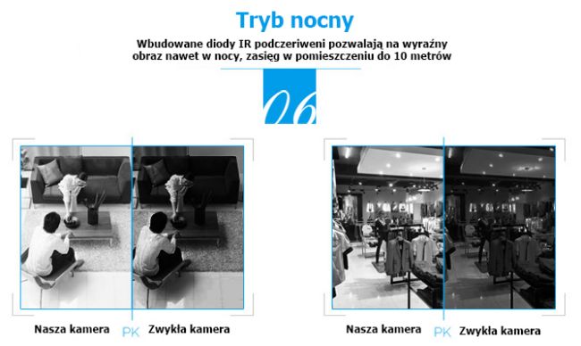 Tryb nocny - zasięg 10 m,