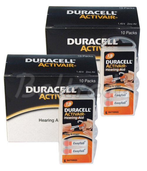 2 kartoniki (120szt.) baterii DURACELL do aparatów słuchowych / implantów - typ 13 (PR48 / DA13).