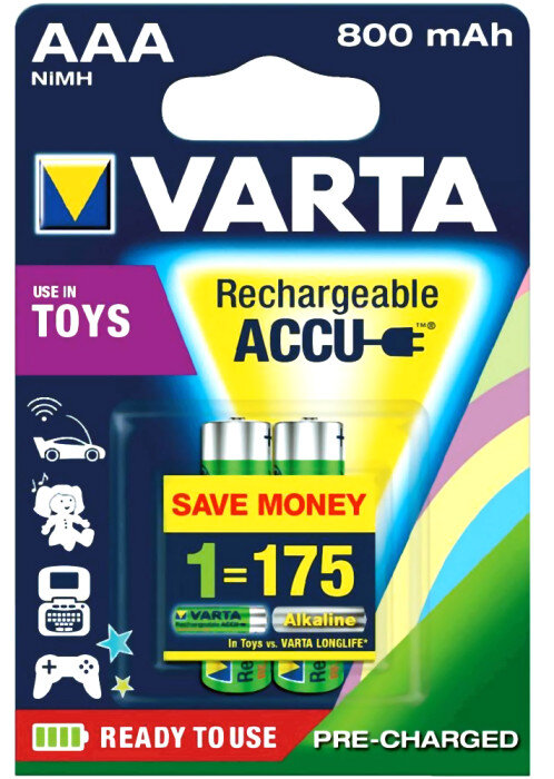 Najmocniejsze na rynku akumulatory nowej generacji Varta Ready2Use TOYS (model 56783), min. 800mAh dedykowane do zabawek.