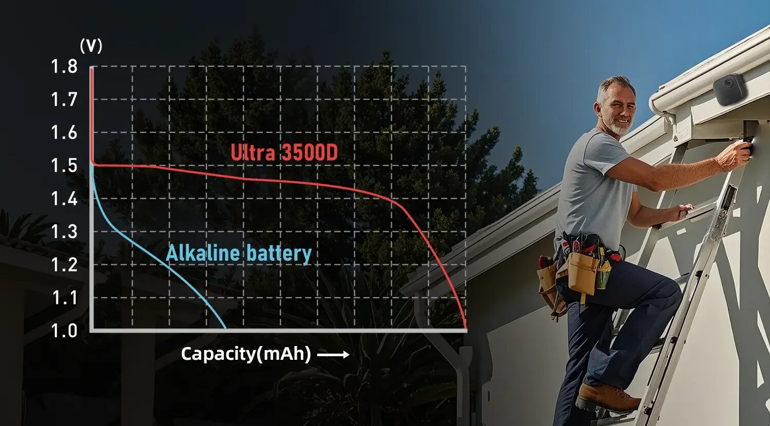 Utrzymuje stałe napięcie 1,5V i oferuje większą gęstość energii niż baterie alkaliczne, dzięki czemu Twój system bezpieczeństwa może działać nieprzerwanie przez ponad dwa lata – rzadziej wchodzisz na drabinę, by wymieniać baterie.