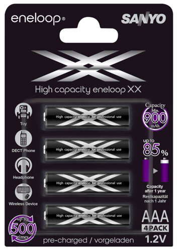 Interesowałeś się już akumulatorkami o niskim stopniu samorozładowania, ale nie byłeś zadowolony z ich pojemności? Firma SANYO, w odpowiedzi na opinie i sugestie swoich klientów, postanowiła wprowadzić na rynek akumulatorki Eneloop XX o pojemności 950mAh, idealnie nadające się do zastosowania w urządzeniach o wysokim zużyciu energii - w szczególności w aparatach cyfrowych. Akumulatorek Eneloop XX oferuje zalety baterii jednorazowego użytku i akumulatorków o dużej pojemności, jest też wstępnie naładowany fabrycznie. Dzięki niskiemu samorozładowaniu akumulatorki zachowują do 85% pojemności nawet po roku przechowywania. Akumulatorki można ładować do 500 razy, dzięki czemu są przyjazne dla środowiska.