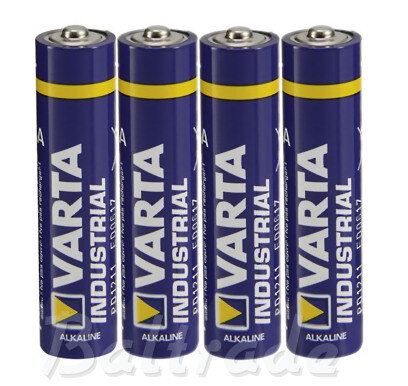 4x zaawansowane baterie alkaliczne LR03 AAA VARTA Industrial (typ 4003) dedykowane do zastosowań profesjonalnych/przemysłowych.