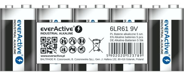 Oferowana cena dotyczy kompletu 5 szt. baterii 6LR61 9V everActive.