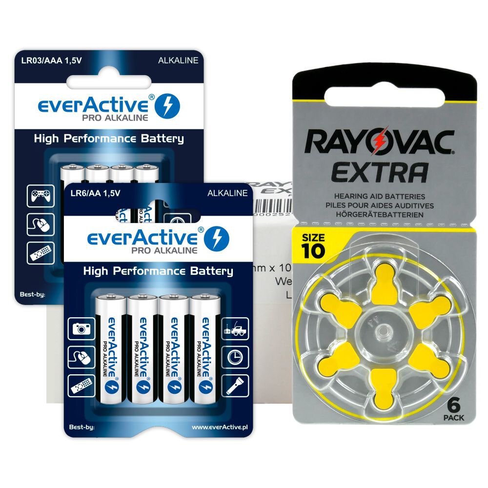 - Ilość: 60 sztuk baterii Rayovac Extra, 4 sztuki LR6 / AA everActive Pro Alkaline, 4 sztuki LR03 / AAA everActive Pro Alkaline