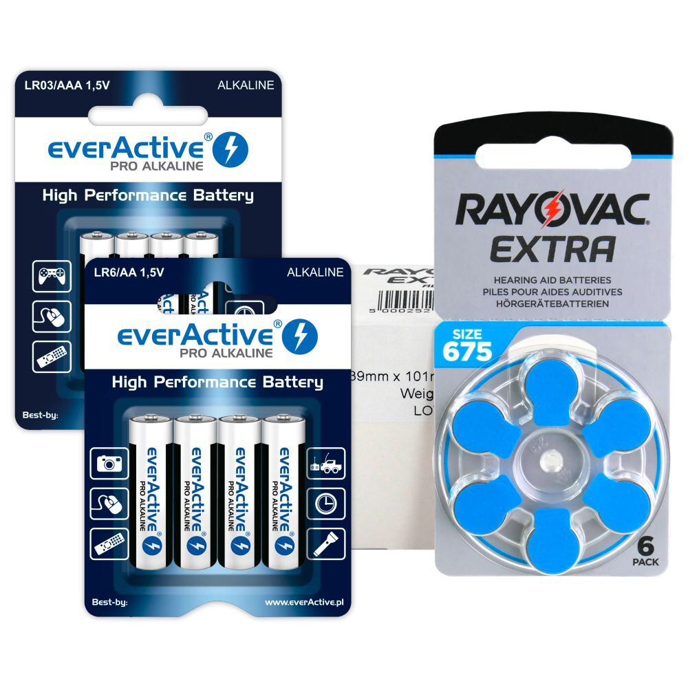 - Ilość: 60 sztuk baterii Rayovac Extra, 4 sztuki LR6 / AA everActive Pro Alkaline, 4 sztuki LR03 / AAA everActive Pro Alkaline