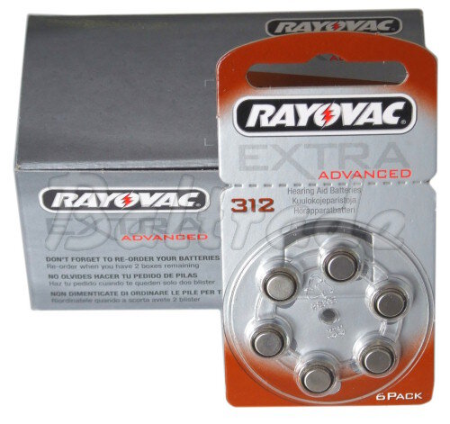 1 kartonik (66szt -- 11 listków po 6szt) RAYOVAC EXTRA z serii ADVANCED do aparatów słuchowych - typ 312.