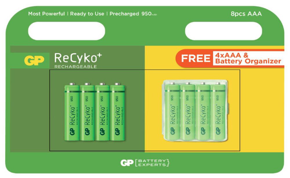GP ReCyko+ to wynik nieustannych badań i rozwoju technologii wytwarzania produktów firmy GP Batteries. GP ReCyko+, podobnie jak zwykłe baterie, mogą być używane natychmiast po zakupie. Mają jednak nad nimi tę przewagę, że mogą być stosowane nawet w nowoczesnym sprzęcie, który wymaga dużego, jednorazowego poboru mocy. Dzięki większej pojemności GP ReCyko+ można wykonać 6-krotnie więcej zdjęć niż przy użyciu baterii alkalicznej.