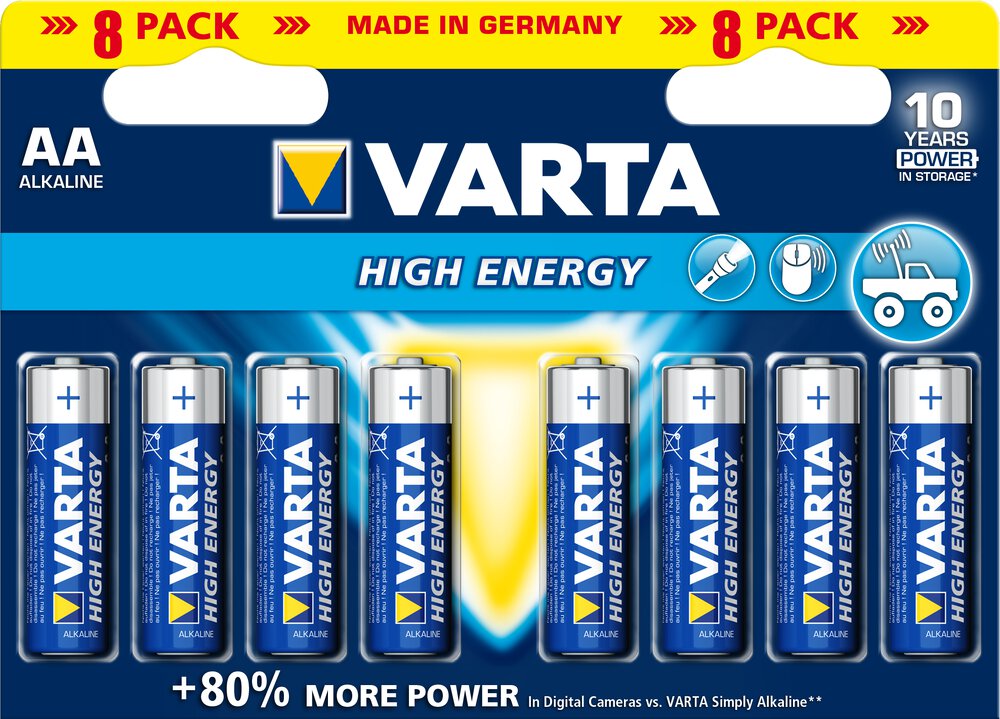 Baterie należą do jednej z najwyższych serii baterii alkalicznych VARTA - HIGH ENERGY i charakteryzują się zwiększoną pojemnością i wydajnością w stosunku do standardowych baterii alkalicznych.