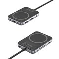 Hub wyposażony jest w magnes kompatybilny z iPhone’ami, który umożliwia wygodne i stabilne mocowanie urządzenia. Ułatwia korzystanie z telefonu podczas pracy, ładowania1 lub synchronizacji danych, zwiększając komfort i porządek na biurku.