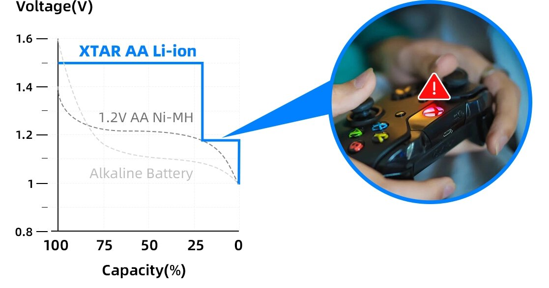 W porównaniu do pozostałych akumulatorów Xtara Li-ion 1.5V ten model został wyposażony w sygnalizację rozładowania.
