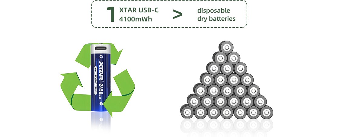Akumulator XTAR w rozmiarze AA / R6 to idealne połączenie najlepszych cech baterii alkalicznej oraz akumulatorków Ni-MH.