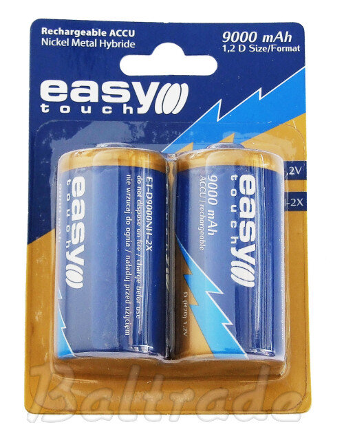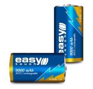 Nowoczesne akumulatory Ni-MH (niklowo-wodorkowe) R14 C, R20 D charakteryzują się znacznie zwiększoną wydajnością w stosunku do mniejszych odpowiedników R6 AA, czy starszych technologicznie ogniw Ni-CD (niklowo-kadmowych). Idealne dla wymagających latarek, reflektorów i innych profesjonalnych urządzeń. Pojemność akumulatorów Easy Touch jest zbliżona do baterii alkalicznych, ale można je wielokrotnie ładować (nawet do 1000x). Akumulatory dużo lepiej znoszą rozładowanie dużym prądem.