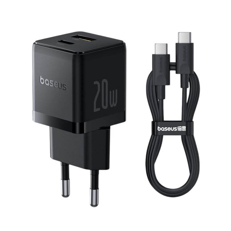 Baseus Palm P10111608113-01 20W szybka ładowarka sieciowa z gniazdem USB + USB-C PD 3.0 + kabel 1m
