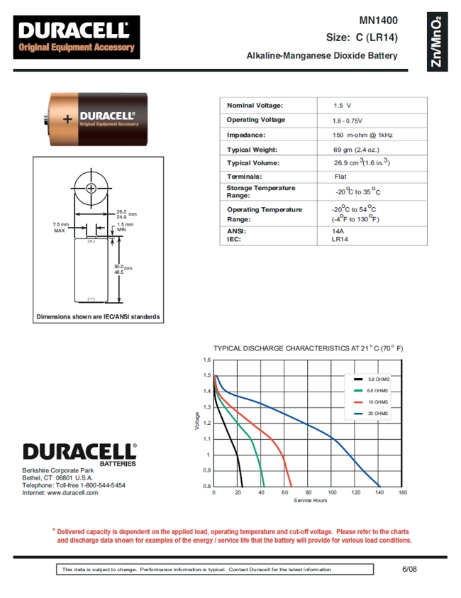 Dane dot. bezpieczeństwa produktu bateria alkaliczna Duracell OEA / OEM LR14 C (bulk)