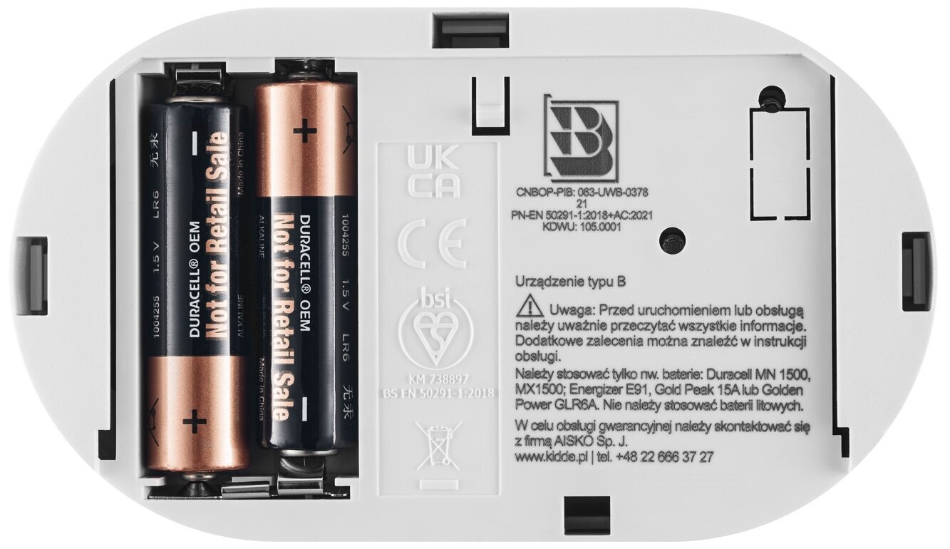 KIDDE K5CO został zaprojektowany z myślą o energooszczędności, co oznacza długą żywotność baterii. Urządzenie zasilane jest za pomocą dwóch baterii AA, które gwarantują nawet do 10 lat działania. Dodatkowo, po upływie tego czasu, czujnik przypomni Ci o konieczności wymiany baterii, dzięki czemu będziesz miał pewność, że jest on sprawny i działa poprawnie.