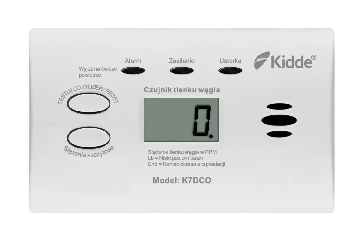 Czujnik tlenku węgla K7DCO wyposażony w sensor elektrochemiczny Kidde, gwarantujący 10-letni okres pracy. Zasilanie bateryjne umożliwia zamontowanie detektora w optymalnym miejscu w pomieszczeniu oraz zapewnia ochronę także w przypadku zaniku napięcia zasilania w sieci.