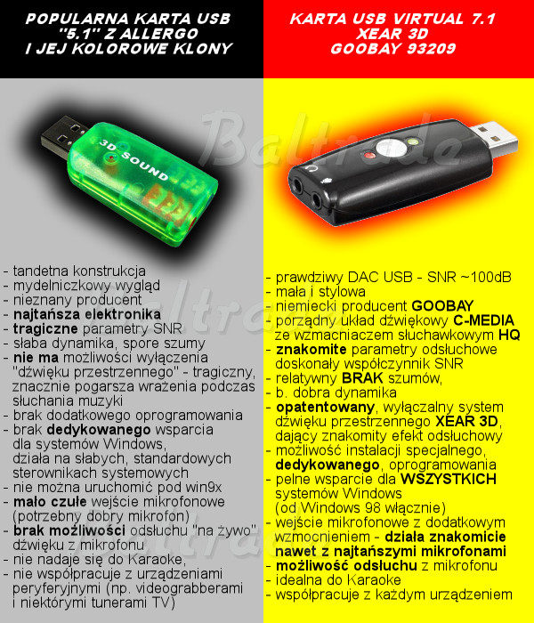 Poniżej krótkie podsumowanie porównujące oferowaną kartę, z tanią kartą "niby 5.1/7.1" USB z allegro.