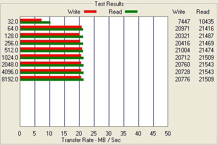 Prędkość zapisu w testach własnych: do 21 MB/s