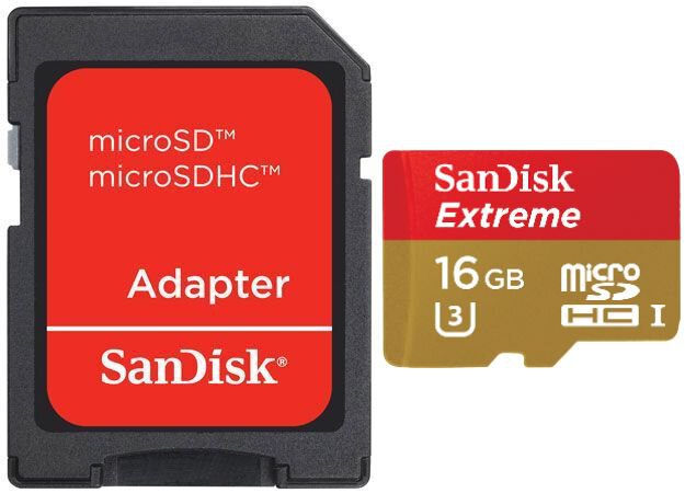 SanDisk microSDHC 16GB Extreme class UHS-I 3, class 10 prędkość odczytu: do 60 MB/s (400x) prędkość zapisu: do 40 MB/s (266x) osiągnięte parametry w testach własnych: prędkość odczytu: 75MB/s prędkość zapisu: 55MB/s |