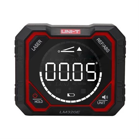 Model LM320E to cyfrowy kątomierz / inklinometr produkowany przez markę UNI‑T, przeznaczony do precyzyjnych pomiarów kątowych w wielu zastosowaniach - od prac budowlanych po instalacje mechaniczne. Urządzenie wyposażono w obudowę z lekkiego stopu aluminium, a także w wyświetlacz LED z automatyczną rotacją - co zwiększa ergonomię w różnych orientacjach pomiaru.