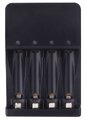 Można ładować od 1 do 4 ogniw o dowolnej pojemności i wielkości (R03 AAA / R6 AA) w dowolnej kombinacji. Ładowanie jest sygnalizowane 4 diodami LED osobno dla każdego kanału.