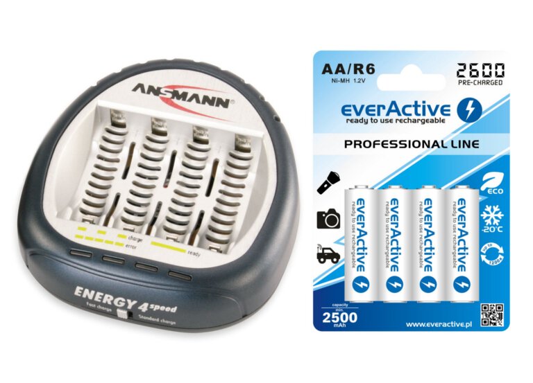2) 4x akumulatorki nowej generacji everActive R6/AA Ni-MH 2600mAh.
