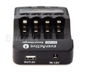 Dodatkowo ładowarka została wyposażona w wyjście USB 5V/1000mA umożliwiające ładowanie urządzeń przenośnych (telefonów itp.).