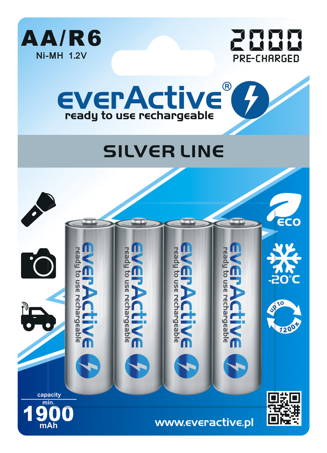 2) 4x akumulatorki nowej generacji everActive R6/AA Ni-MH 2000mAh.