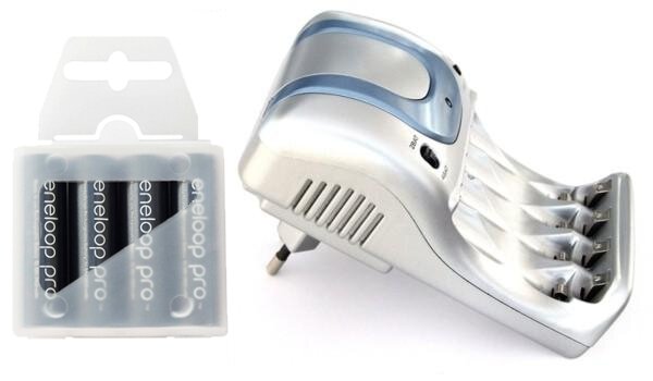 W skład zestawu wchodzą również 4 x akumulatorki Panasonic Eneloop PRO R6/AA 2550mAh Ni-MH BK-3HCCE/4BE, łączące zalety akumulatorków z możliwością ładowania oraz baterii jednorazowych.