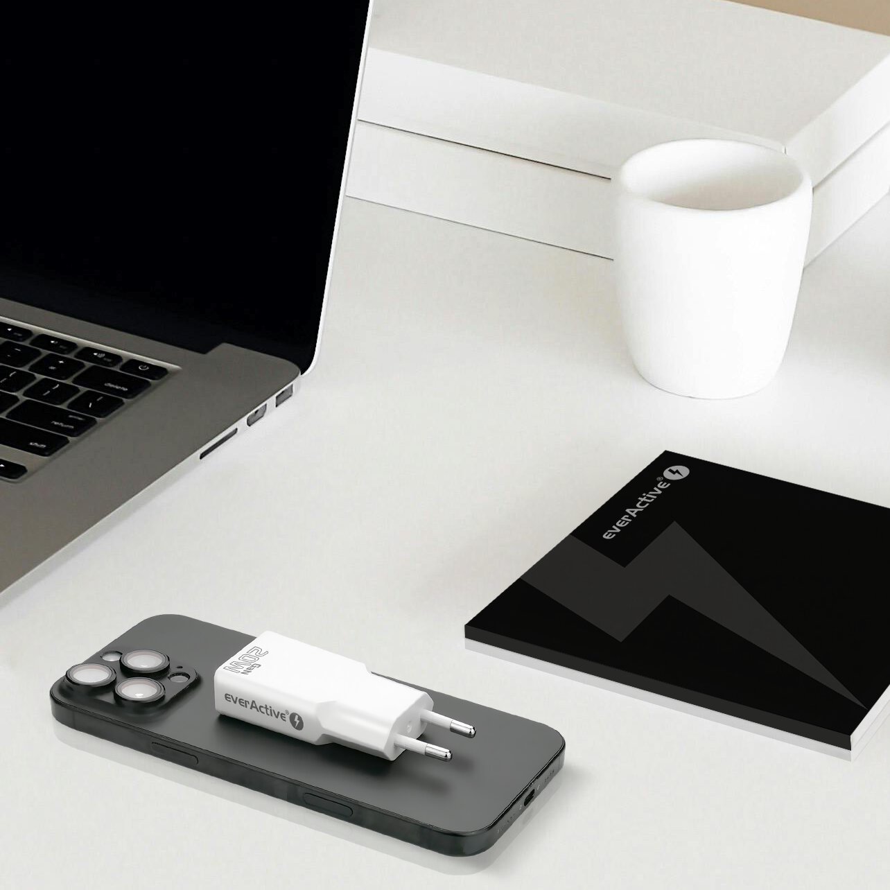 Ładowarka everActive SUPER SLIM to połączenie najnowszej technologii GaN z wyjątkowo kompaktową formą – urządzenie ma jedynie 15 mm grubości, co czyni ją jedną z najcieńszych ładowarek sieciowych dostępnych na rynku.