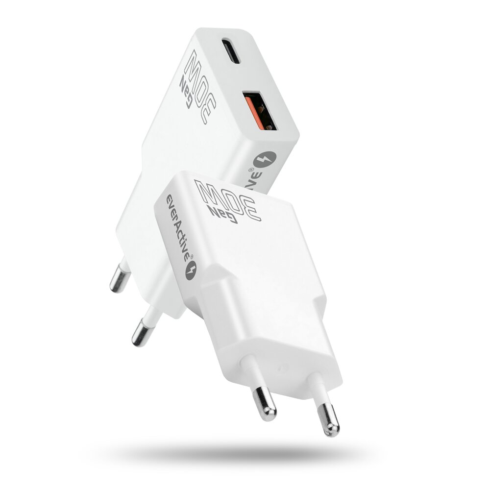 Ładowarka everActive SUPER SLIM to połączenie najnowszej technologii GaN z wyjątkowo kompaktową formą – urządzenie ma jedynie 15 mm grubości, co czyni ją jedną z najcieńszych ładowarek sieciowych dostępnych na rynku.