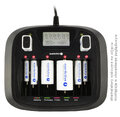 NC800U to procesorowa ładowarka z 6 niezależnymi obwodami do ładowania od 1-6 ogniw AA/R6, AAA/R3 lub 1-4 ogniw C/R14, D/R20, o dowolnej pojemności.2 dodatkowe kanały, przeznaczone są do ładowania akumulatorów 9V.