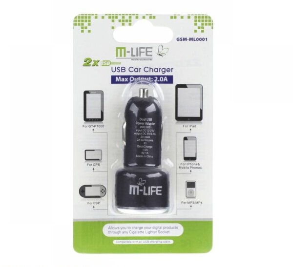 Wysokiej jakości, bezpieczna ładowarka marki M-Life. Jakość potwierdzona certyfikatem CE. Duża maksymalna moc ładowania: 2A. Umożliwia ładowanie nawigacji, telefonów, tabletów, odtwarzaczy mp3/mp4, PDA oraz innych urządzeń ładowanych przez USB - wystarczy podpiąć oryginalny kabel USB od posiadanego urządzenia. Posiada zabezpieczenie zwarciowe i przeciążeniowe. Całkowita wysokość ładowarki to 7cm, po włożeniu do gniazda wystaje na zaledwie 22mm.