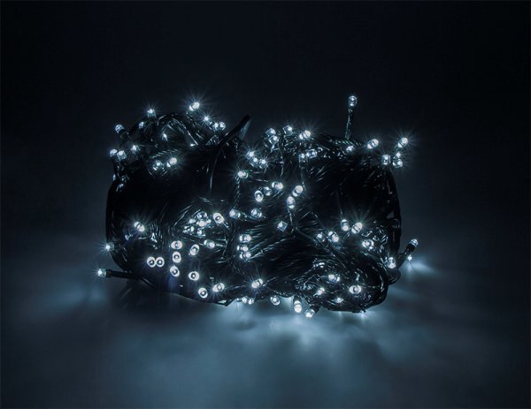 Nowoczesny energooszczędny sznur lampek LED doskonałej jakosci. Dekoracja świetnie sprawdzi się na choince, balkonie lub tarasie, jak też w witrynie sklepowej czy jako dekoracja domu, zapewniając powstanie unikalnej, niepowtarzalnej świątecznej atmosfery. Oświetlenie LED to nowoczesne, trwałe i energooszczędne źródło światła. Przepalenie jednej z nich nie wygasza całego zestawu. Zestaw wykonany jest z trwałych, odpornych na zginanie i wypalanie miedzianych przewodach w zielonych koszulkach. Lampki wyposażone są w przedłużkę, umożliwiającą łączenie wielu zestawów, oraz 8 funkcyjny sterownik, oferujący wiele opcji "mrugania" a także funkcję świecenia światłem stałym.