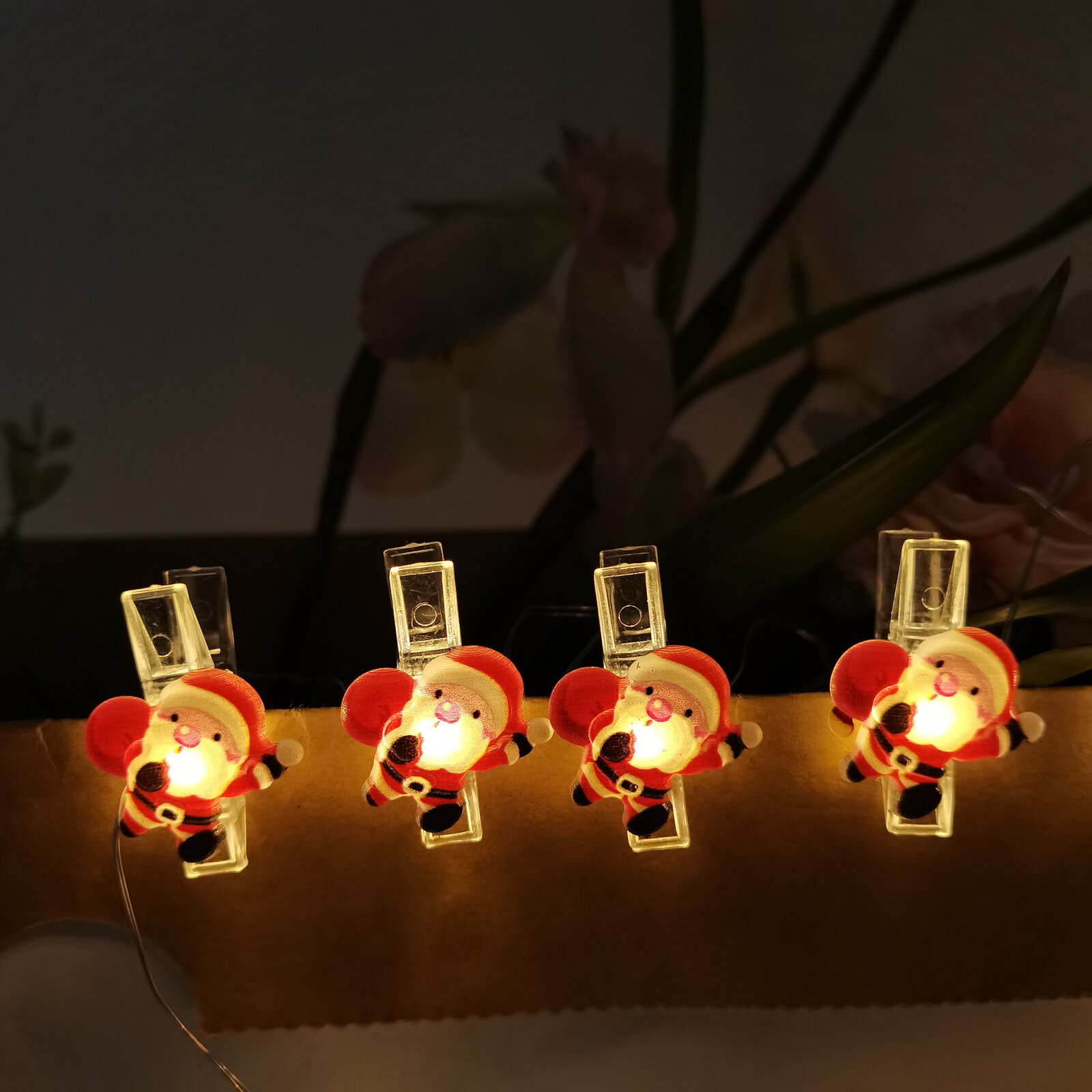 Produkt ma długość 90 cm i wyposażony jest w 10 diod LED. Żarówki w kształcie Mikołaja rozmieszczone są co 10 cm. Dzięki dołączonym klipsom montaż staje się łatwiejszy i bardziej elegancki. Łańcuch zasilany jest kablem o długości 30 cm, podłączonym do pojemnika na baterie, który wymaga 2 baterii AA. Przy użyciu wysokiej jakości baterii dekoracja może świecić do 3 dni ciągłego użytkowania.