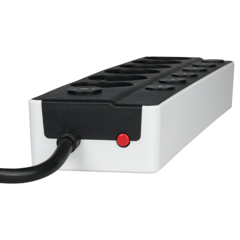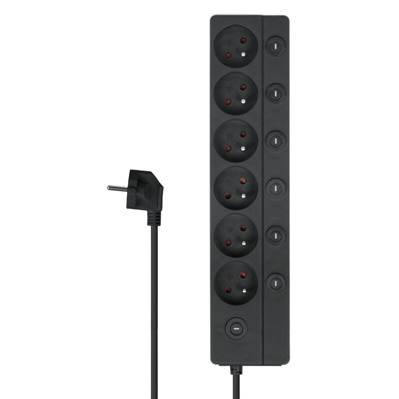 Urządzenie posiada wyłącznik główny oraz oddzielne włączniki dla każdego gniazda, umożliwiające wygodne zarządzanie zasilaniem podłączonych urządzeń i oszczędność energii.