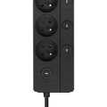 Listwa ochronna została wyposażona w 6 gniazd z uziemieniem, co pozwala na bezpieczne podłączenie wielu urządzeń jednocześnie. Maksymalne obciążenie 16 A (3680 W) sprawia, że doskonale nadaje się do zastosowań domowych i biurowych.