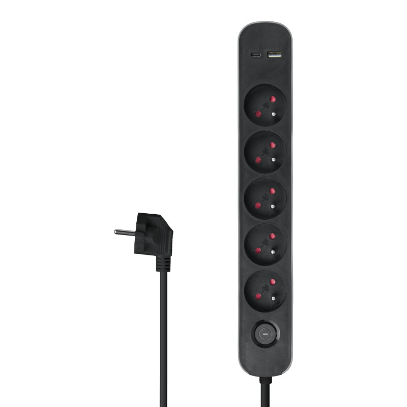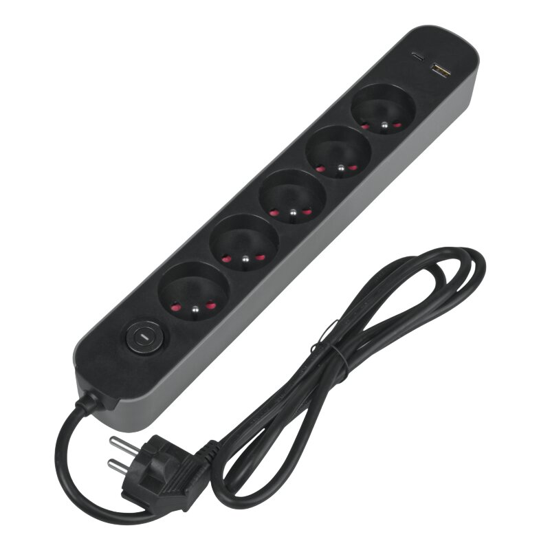 Listwa ochronna została wyposażona w 5 gniazd 2P+T, umożliwiających jednoczesne podłączenie kilku urządzeń elektrycznych. Maksymalne obciążenie wynosi 16 A (3680 W), co zapewnia bezpieczne zasilanie sprzętu domowego i biurowego.