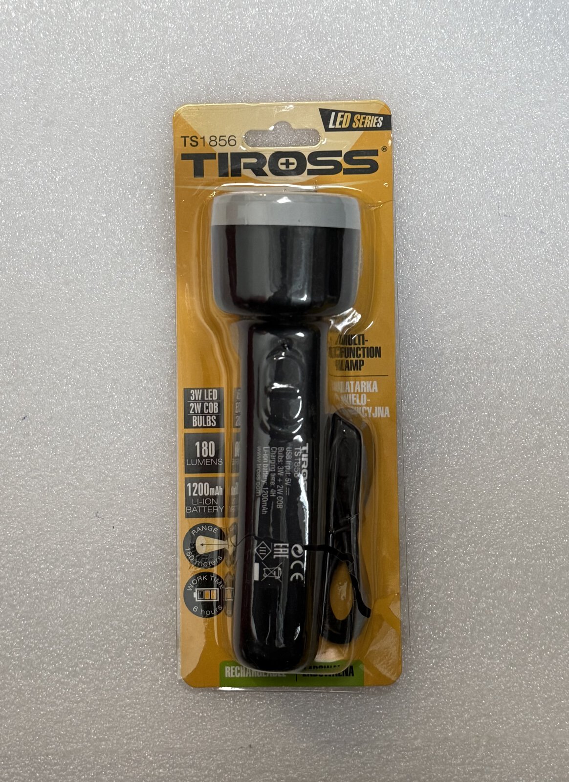 Tiross TS-1856 to ekonomiczna, wielofunkcyjna ładowalna latarka z dwoma źródłami światła .