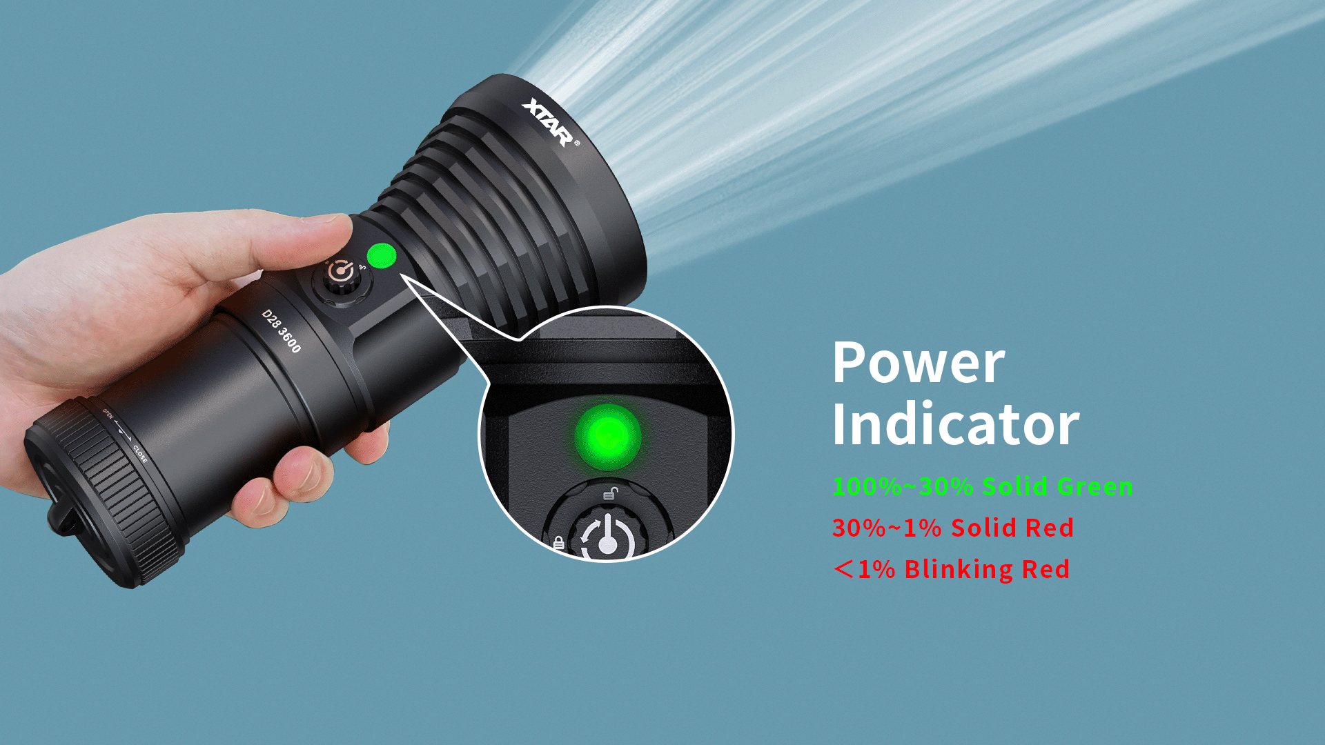 W odróżnieniu od większości konkurencyjnych latarek Xtar w swojej konstrukcji zamiast zwykłego włącznika użył magnetycznego włącznika z funkcją blokady, dzięki czemu D28 3600 jest idealnie uszczelniona oraz zabazepieczona przed przypadkowym włączeniem latarki podczas transportowania. Latarka Xtar D28 3600 została wyposażona w diodę sygnalizacyjną, która pokazuje stan naładowania akumulatora. W przypadku niskiego poziomu naładowania akumulatora dioda najpierw zapali się na czerwono, natomiast przy skrajnym poziomie rozładowania dioda zacznie dodatkowo migać.