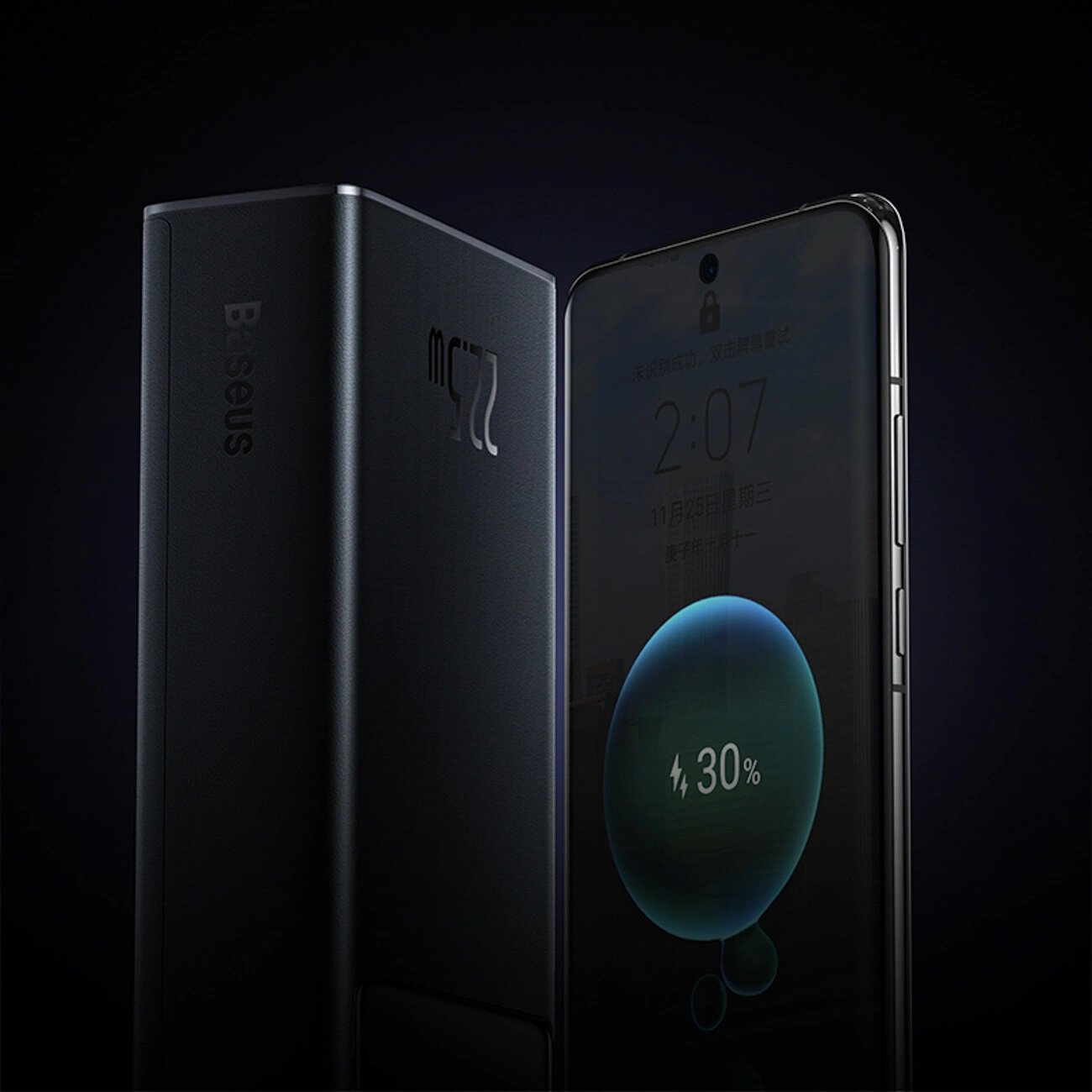 Powerbank obsługuje PD 20W, SCP oraz QC, dzięki czemu naładuje smartfon nawet 3 razy szybciej niż standardowa ładowarka. W praktyce oznacza to możliwość uzupełnienia baterii telefonu do 50% w około 30 minut.