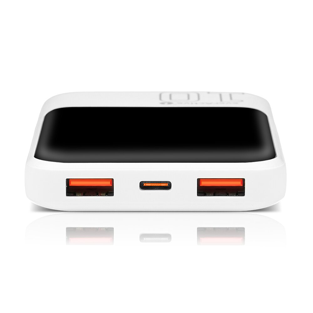 USB-C (wejście/wyjście) oraz dwa porty USB-A umożliwiają ładowanie do trzech urządzeń jednocześnie.