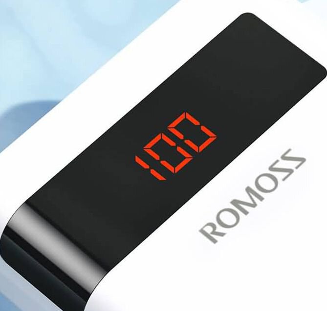 Powerbank od Romoss posiada cyfrowy wyświetlacz LED, który dostarcza informacji o poziomie naładowania. To jednak nie wszystko. Innowacyjna technologia pozwala przełączać się między trybami i wyświetlać informacje o napięciu oraz natężeniu ładowania. Dodatkowo na ekranie pojawi się mała ikona, kiedy ładowarka będzie w trybie szybkiego ładowania.