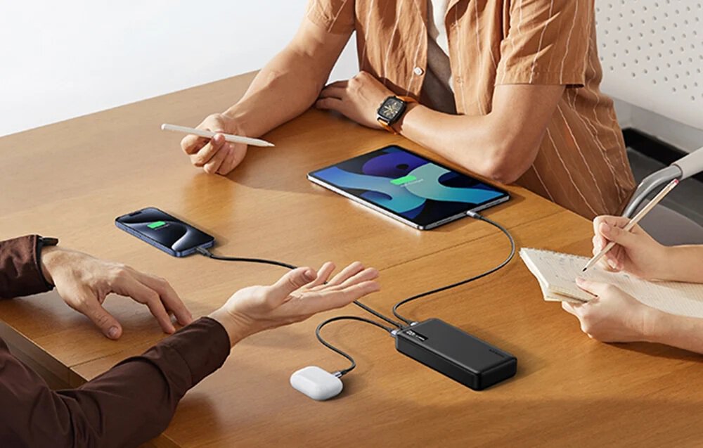 Ugreen PB312 współpracuje z różnorodnymi urządzeniami — od smartfonów i smartwatchy, po słuchawki i niewielką elektronikę codziennego użytku. Trzy dostępne porty USB umożliwiają jednoczesne ładowanie nawet trzech sprzętów, co oszczędza czas i sprawdza się tam, gdzie nie masz dostępu do wielu gniazdek.
