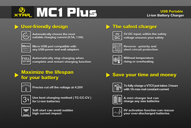 Ładowarki od innych producentów mogą znacząco podnosić temperaturę ładowanych ogniw podczas ładowania. Zbytnie nagrzewanie się ogniw może powodować ich szybsze zużycie. Projektując ładowarkę MC1 Plus, firma Xtar poszła o krok dalej od konkurencji, rozwiązując ten problem w prosty sposób: zastosowano zasilanie z zewnętrznego zasilacza. Dzięki temu temperatura ładowanego w MC1 Plus akumulatorka wzrośnie najwyżej o 15 stopni.