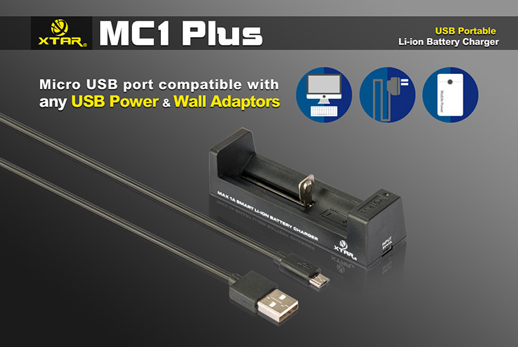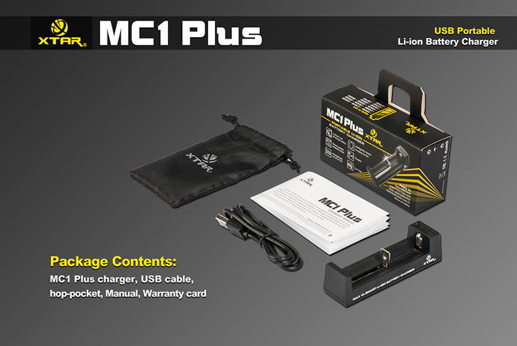 W komplecie z ładowarką Xtar MC1 Plus otrzymujemy kabel micro USB oraz pokrowiec zabezpieczający ładowarkę na czas transportu. Do zestawu nie jest dołączony zasilacz. Do zasilenia ładowarki wystarczy dowolna ładowarka z kablem micro USB, np. od telefonu, lub gniazdem USB lub komputer z wolnym portem USB. Zalecana minimalna moc ładowarki to 1A (1000mA). Możliwe jest użycie ładowarki o mniejszej mocy ale w takim wypadku czas ładowania ulegnie wydłużeniu.