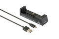 W niewielkiej obudowie ukryta jest w pełni profesjonalna procesorowa ładowarka z trzystopniowym procesem ładowania TC/CC/CV. Ładuje ogniwa Li-ion 3,6 / 3,7V o dowolnej pojemności w rozmiarach 10440, 14500, 14650, 16340, 17500, 17670, 18350, 18500, 18650, 18700, 20700, 21700 - tylko niezabezpieczone, 22650, 25500, 26650.