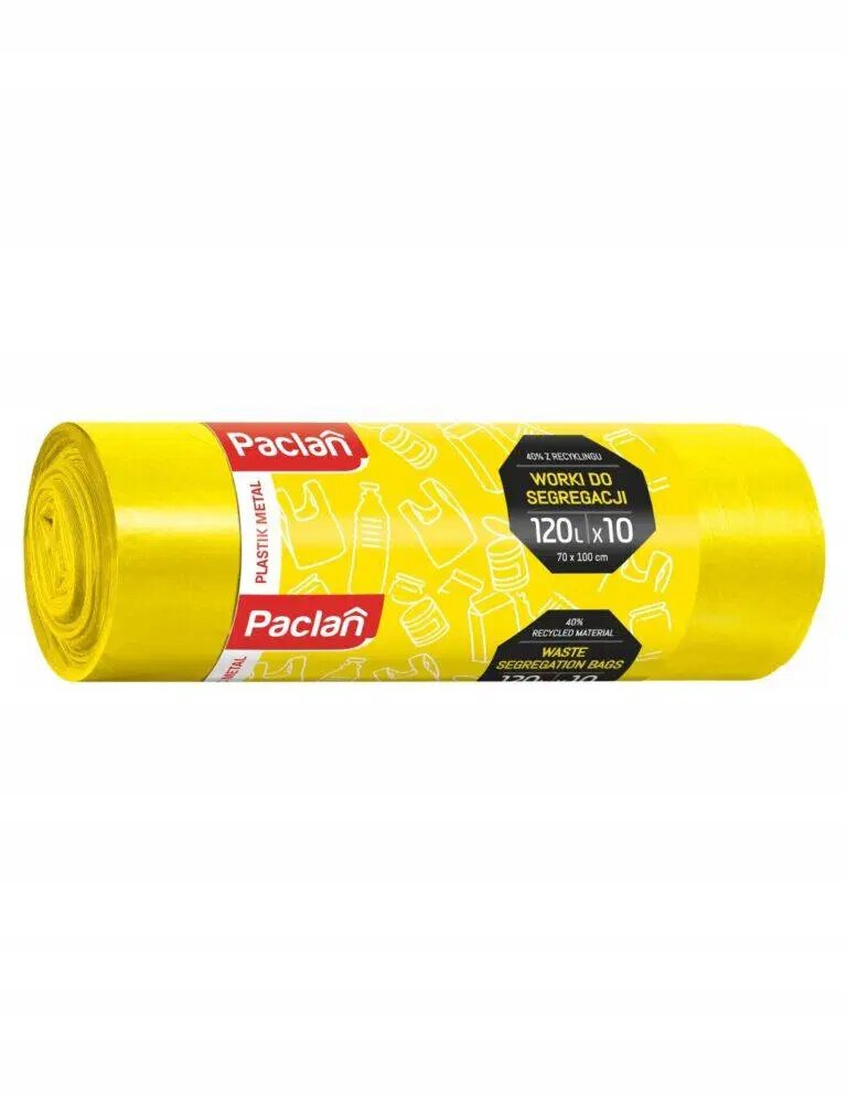 PACLAN Worki do segregacji śmieci - ŻÓŁTE ( Plastik i Metale ) 120 L - 10 sztuk