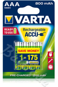 2) Akumulatorki nowej generacji Varta Ready2Use 800mAh R03/AAA Ni-MH.